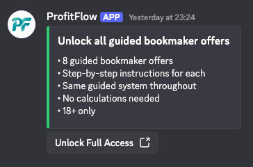 ProfitFlow walks you through bookmaker sign-up offers from start to finish. Each offer is broken into clear steps — no searching, no calculations, no guesswork.